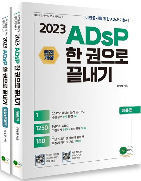 저는 에이아이 에듀에서 출판된 ADsP 한 권으로 끝내기라는 책을 주 교재로 공부를 하였습니다. 제가 통계학을 전공하고 있기는 하지만, 모든 과목을 수강한 것도 아니고, 또 수업을 들은 과목을 모두 잘하는 것은 아니었기 때문에 3과목 내용도 자세한 책이 필요했습니다. 다른 ADsP 책과 달리 엄청 지엽적인 것들까지 많은 내용을 담고 있는 책이기 때문에 주교재로 선택해서 공부하게 되었습니다. 또, 기출문제들이 복원된 것이 많아 문제를 많이 풀어볼 수 있다는 것 또한 이 책의 큰 장점이라고 생각합니다.