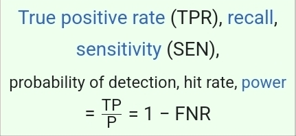 식을 보면 실제 Positive중에서 Positive라고 옳게 예측한 것을 의미합니다.