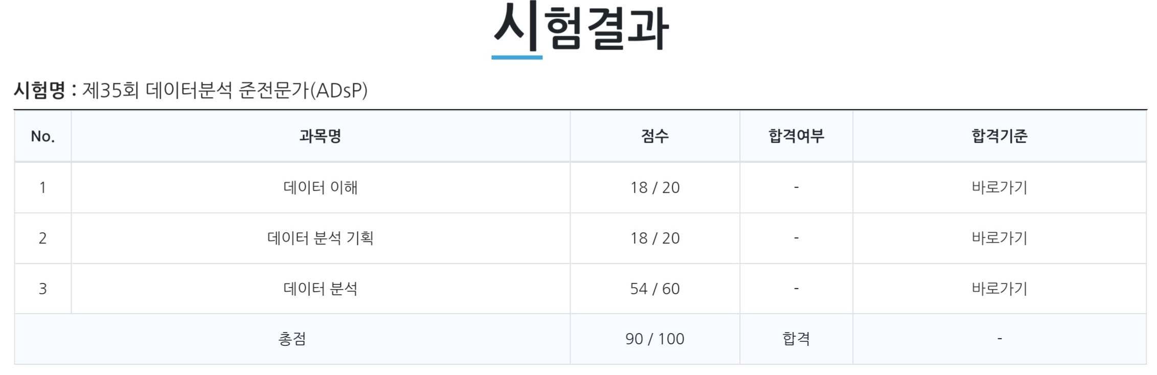 드디어 ADsP 35회 결과가 나왔습니다.